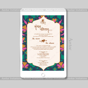 Announce your union with grace and tradition using our Navy Blue Hindu Gujarati Wedding Digital Invitation. This exquisite card, adorned with an intricate multi-color floral design, captures the essence of your love story and cultural heritage.