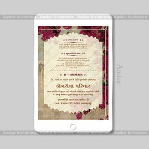Experience the grandeur of a Hindu wedding with our DWI-2004 Digital Shaadi Invitation. The Royal Floral Theme, adorned with pink flowers and lamp lights, adds an elegant touch to your special day. What’s more, you can customize it in multiple languages, including Gujarati, Hindi, English, and Marathi, making it accessible to all your loved ones. Order now to share your love story in royal style.