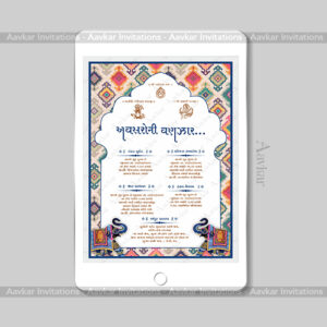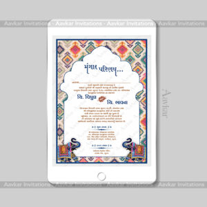 Step into a world of tradition and love with DWI-2011, a majestic Hindu Wedding E-Card. The Royal Elephant theme, adorned with grand elephant motifs and opulent Rajwadi prints, offers a regal setting for your wedding celebration.