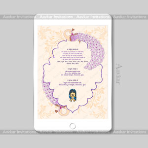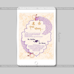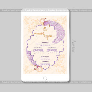 Embrace the beauty of nature with our Wedding E-Invitation, showcasing the “Foliage Pattern with Peacock” theme, DWI-1022. This theme gracefully combines the elegance of foliage patterns and the regal presence of peacocks against a serene crème background. Our Digital Invitation is available in both PDF and JPG formats, offering convenience for sharing with your guests. Personalize your invitation with the cultural touch of the Gujarati, Hindi, Marathi, and English language. Order now to make your wedding announcement a work of art.